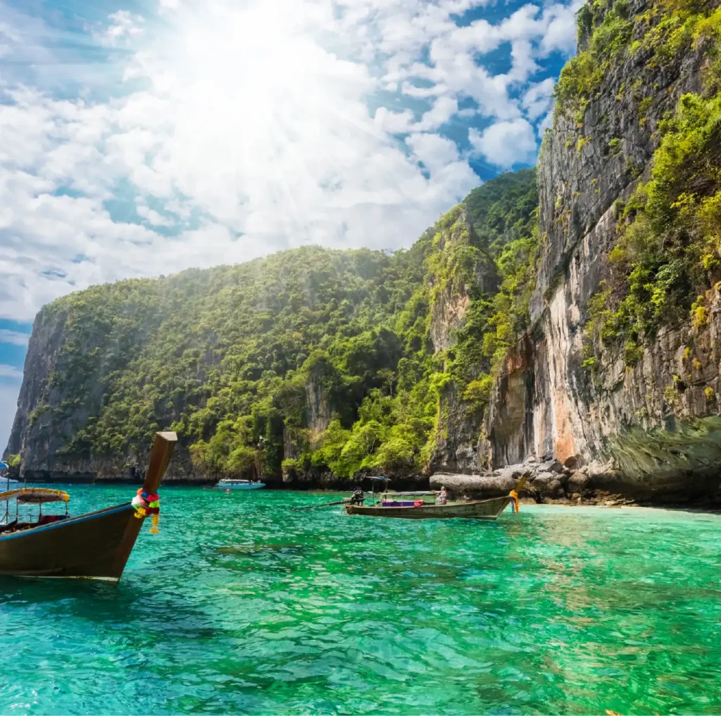Phuket and Krabi, Thailand, are top coastal destinations known for beaches, clear waters, adventure sports, limestone cliffs, and vibrant culture.