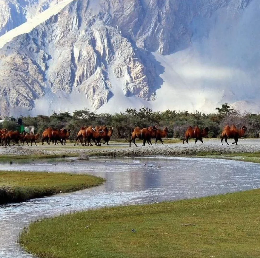 - Nubra Valley: Khardung La Pass, Hunder sand dunes, Diskit Monastery